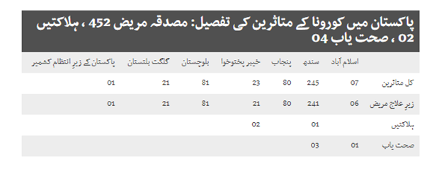 With a very heavy heart we’re confirming the first death of #COVID19 in #Sindh. The 77 year old patient was a resident of Karachi & had a history of carcinoma, diabetes and hypertension with no travel and contact history. #SindhHealth #CoronaVirusPakistan pic.twitter.com/NZbOQoncv3— Health and Population Welfare Department, Sindh (@SindhHealthDpt) March 20, 2020